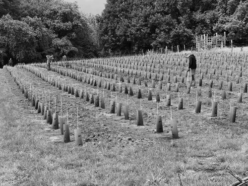 In april 2022 was het dan zover. Nadat we met de stad een huurovereenkomst konden sluiten voor geschikte terreinen werden onze gronden klaargemaakt door vzw De Winning, een maatwerkbedrijf uit Genk. Op 30 april 2022 werd dan de eerste wijnstok (een Pinot Grigio) door burgemeester Wim Dries en een delegatie oud-mijnwerkers onder begeleiding van het mijnwerkerskoor geplant. Ondertussen zijn dankzij onze vele vrijwilligers 3600 wijnstokken van verschillende variëteiten geplant.